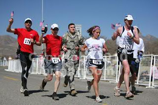 ~ I LOVE running with members from the military-- they are always so focused and serious, but as soon as you yell to them, they are very excitable!!! We even found our own AF LT and commandeered him for the remainder of the course! We encouraged him and he encouraged us. We had a ton of fun being part of a team too! What a great twist on a marathon.